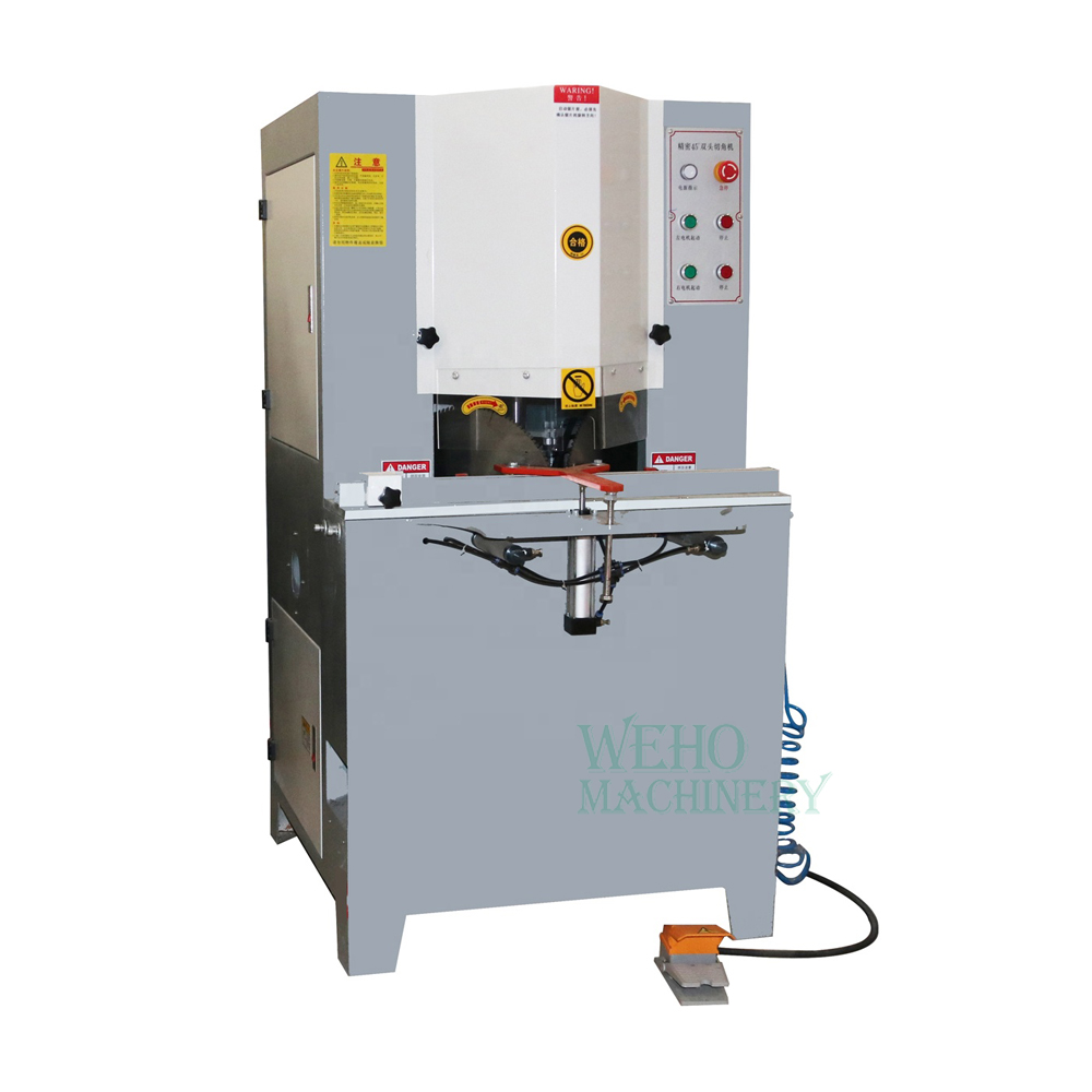 The main spindle running at high speed. It can cut two (one on the left ,the other on the right) 45 degrees at the same time with one action.