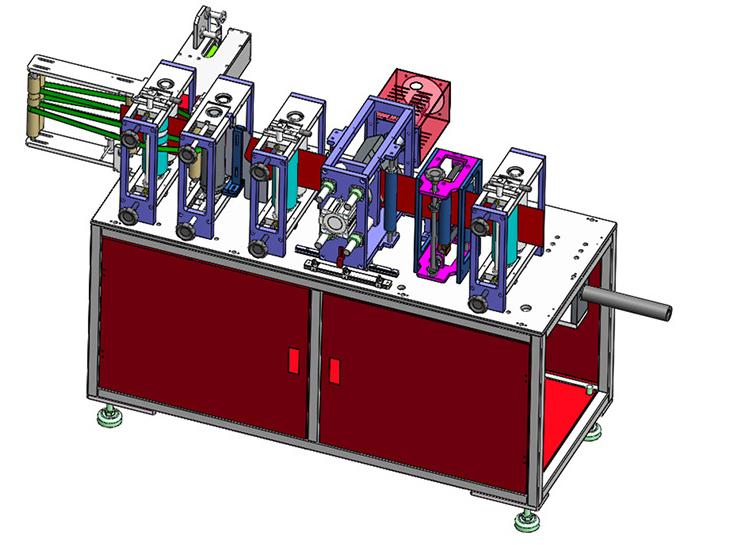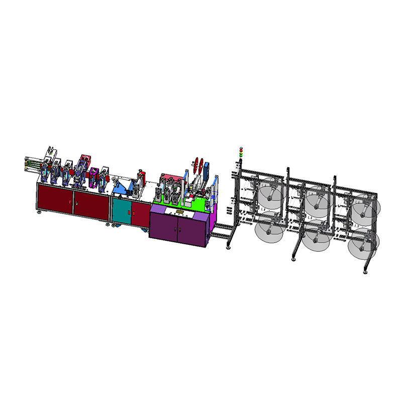In order to achieve the perfect cooperation between the body machine and the ear belt welding machine, one body machine needs to be matched with two or three ear belt welding machines. In the fully automatic integrated equipment, generally one mask body machine is also connected with two or three ear belt welding machines.
