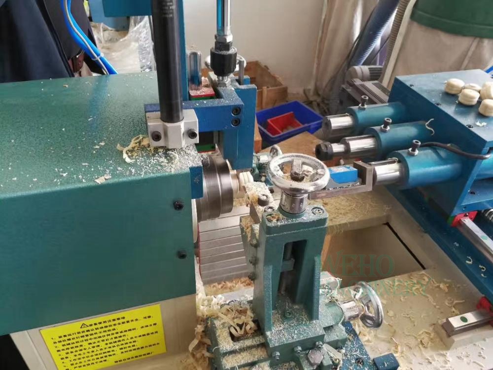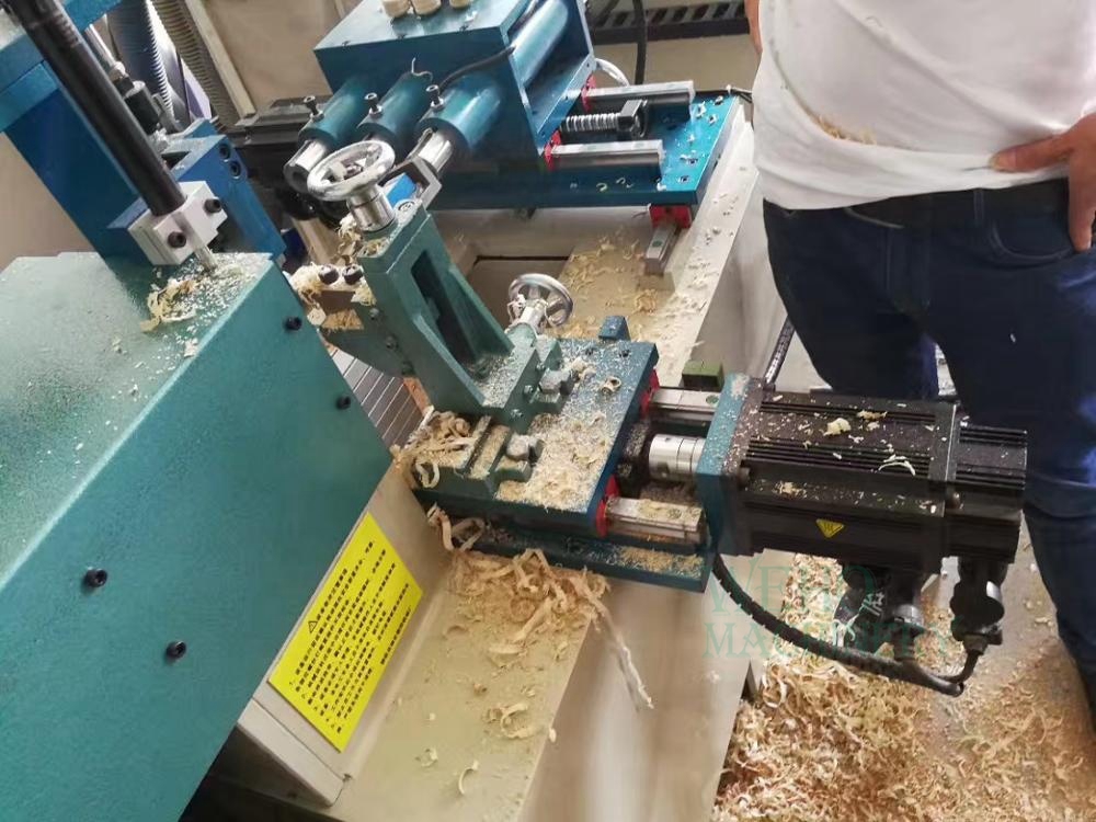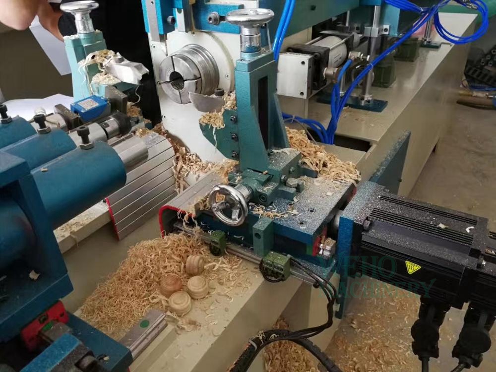 Wood beads making machine has four servo motor, control back moulding knife cutting, wooden rod feeding, beads drilling or moulding from front, cut off from top. Very long service life, is the standard Piece. If there is damage to the direct replacement, without understanding the sharpening technique.