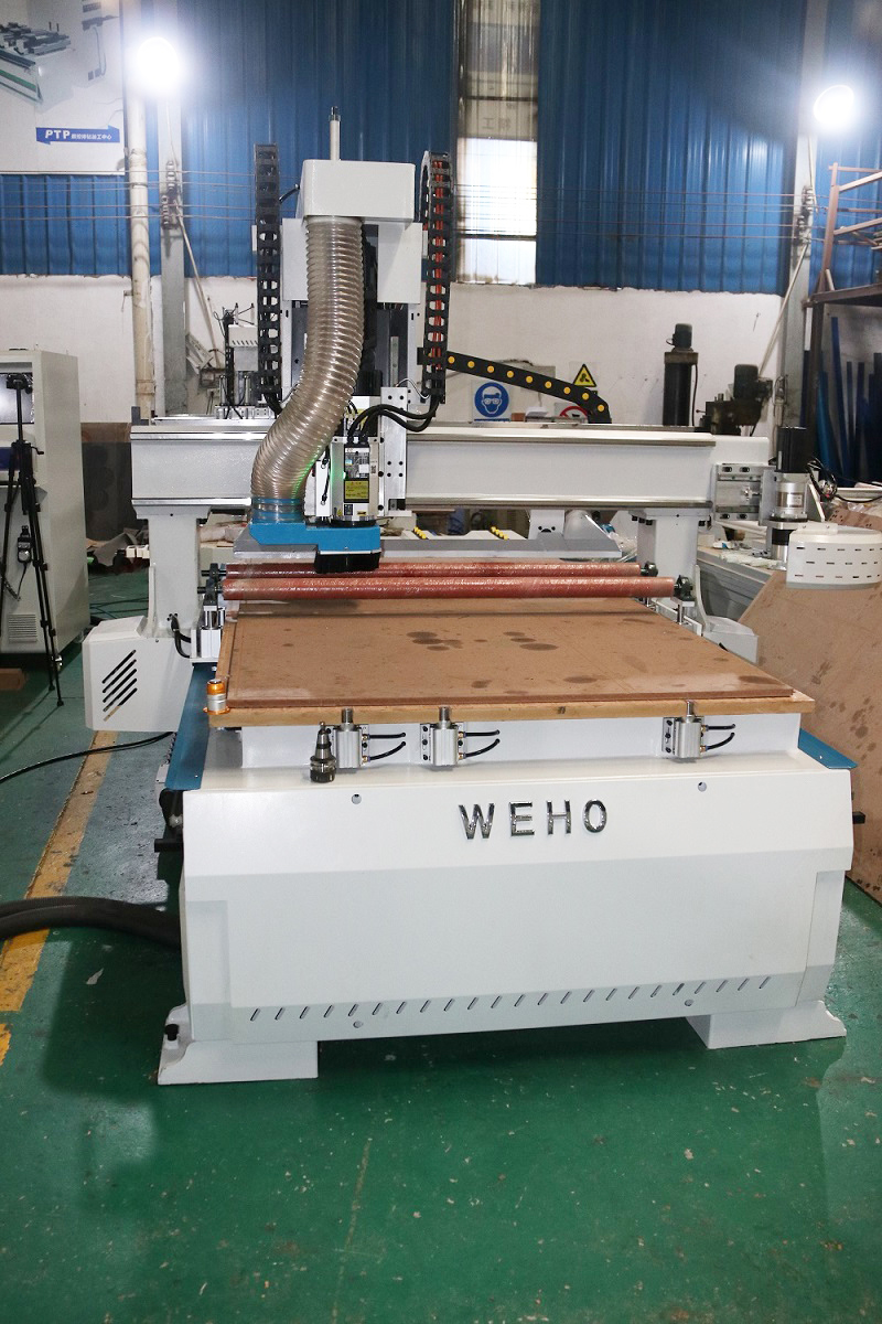 Disc type plastic steel tool magazine, 8 tools capacity (8 or 12 tools capacity aluminum alloy tool magazine is optional); Single vacuum area worktable (2 areas is optional);