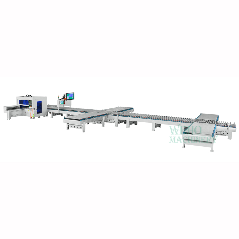 Return conveyor Fully automatic line is available, with six side drilling machine, CNC nesting machine connecting, and automatic sorting system, can build customized furniture intelligent production line.