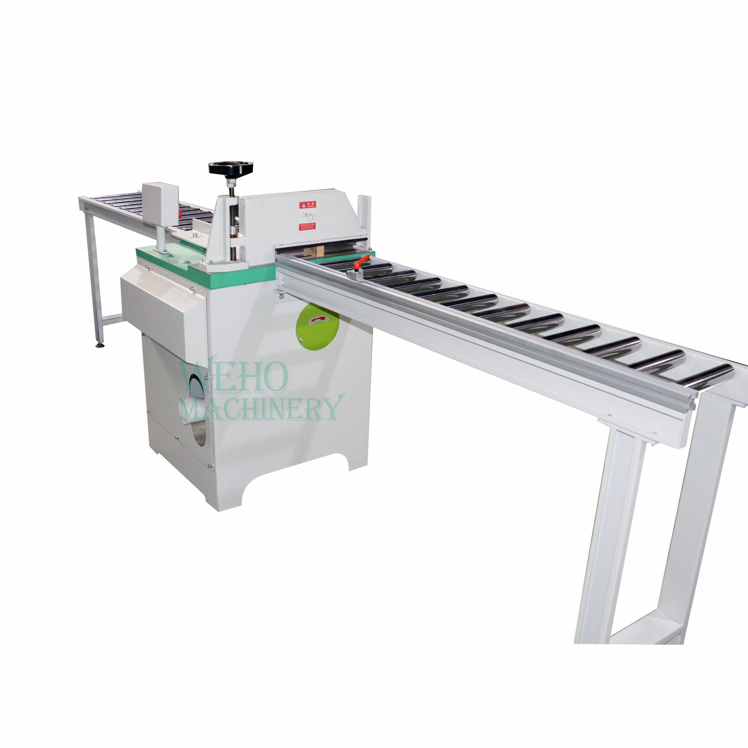 Fast cutting rate, Cycle speeds are adjustable for wood cut off saw machine. Motion cycles are pneumatically operated, and conveniently controlled by a foot switch. Easy belt tension is adjustment or replacement. In-feed and out-feed roller conveyors are standard for cut off saw.