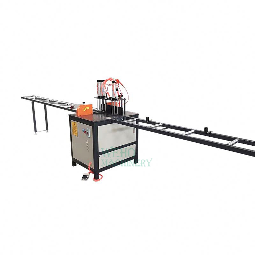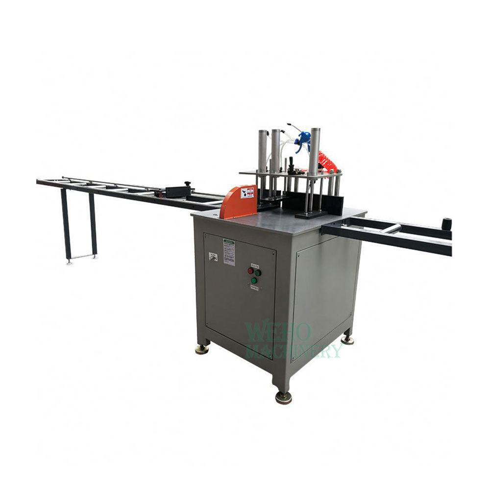 The worktable installed with air cylinder. Air pressure and pressing speed are adjustable, according to thickness of the material, adjust it to the appropriate working pressure and speed to avoid damage aluminum profile and make it deformed.