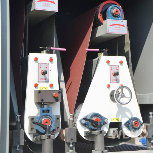 Feeding belt automatic entering , Protector for sanding belt breaking down and loosen. Advanced balancing testing fixed thick rolls, steel rolls and pulleys, makes the machine run more smoothly.