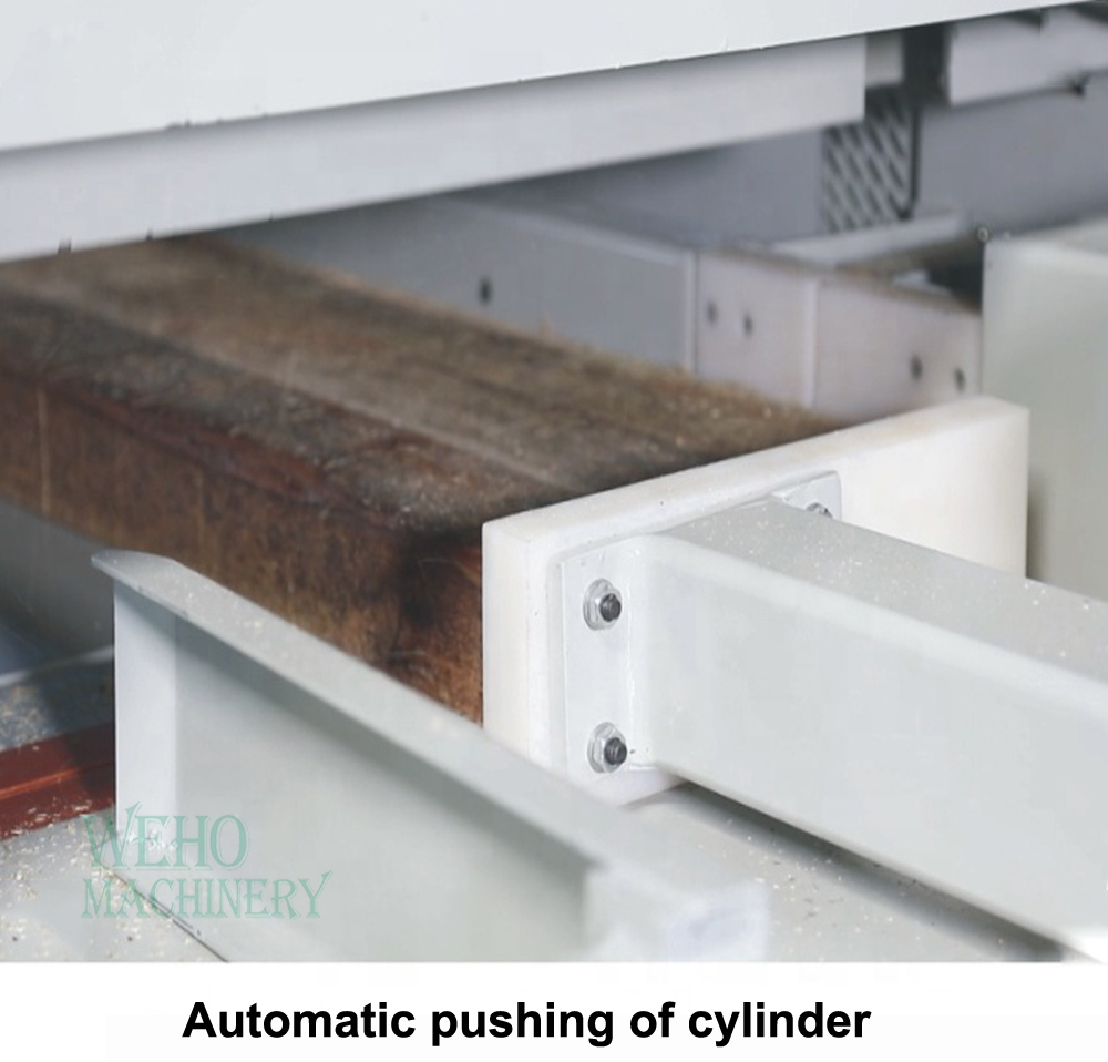 Fast cutting rate, Cycle speeds are adjustable for wood cut off saw machine. Motion cycles are pneumatically operated, and conveniently controlled by a foot switch. Easy belt tension is adjustment or replacement. In-feed and out-feed roller conveyors are standard for cut off saw
