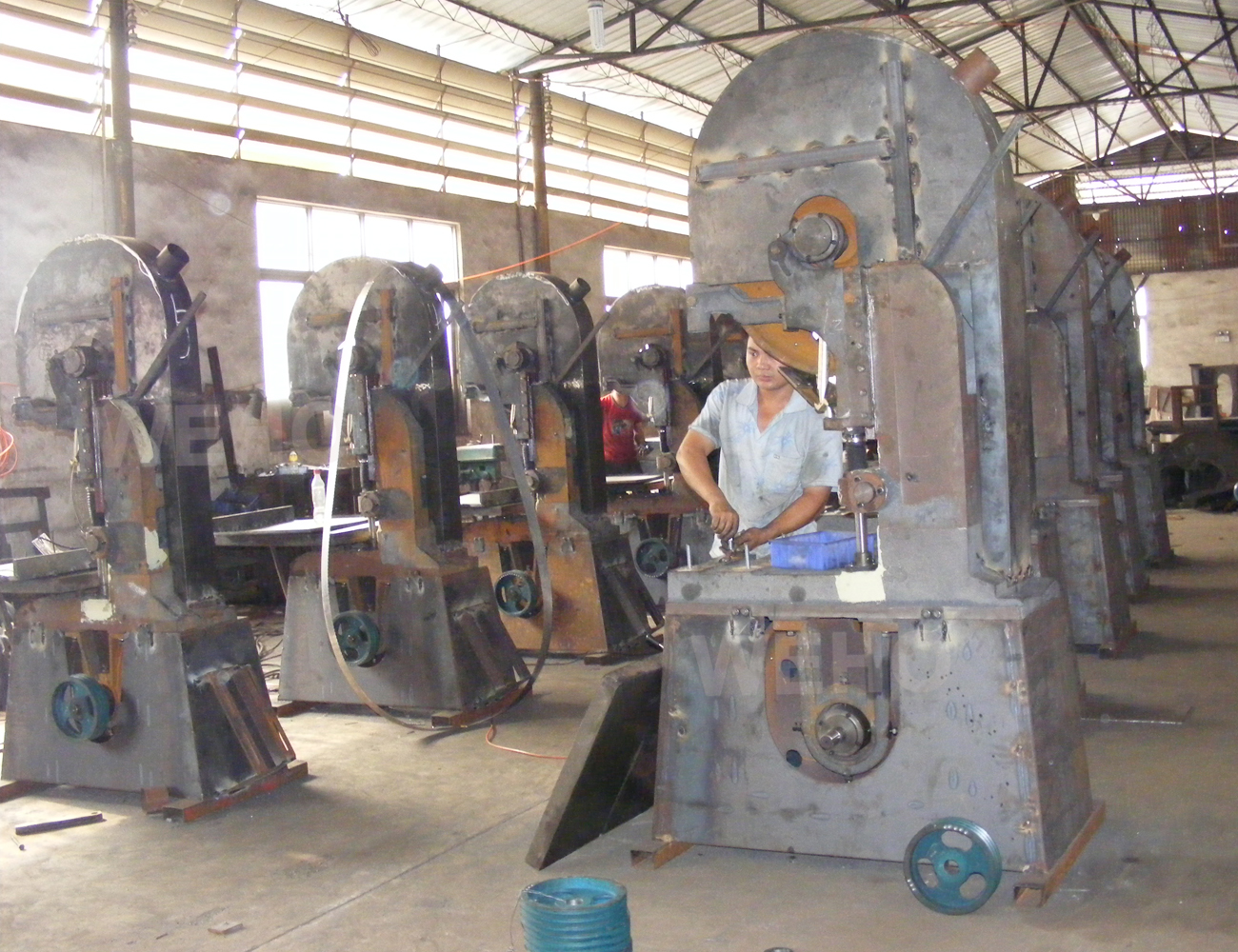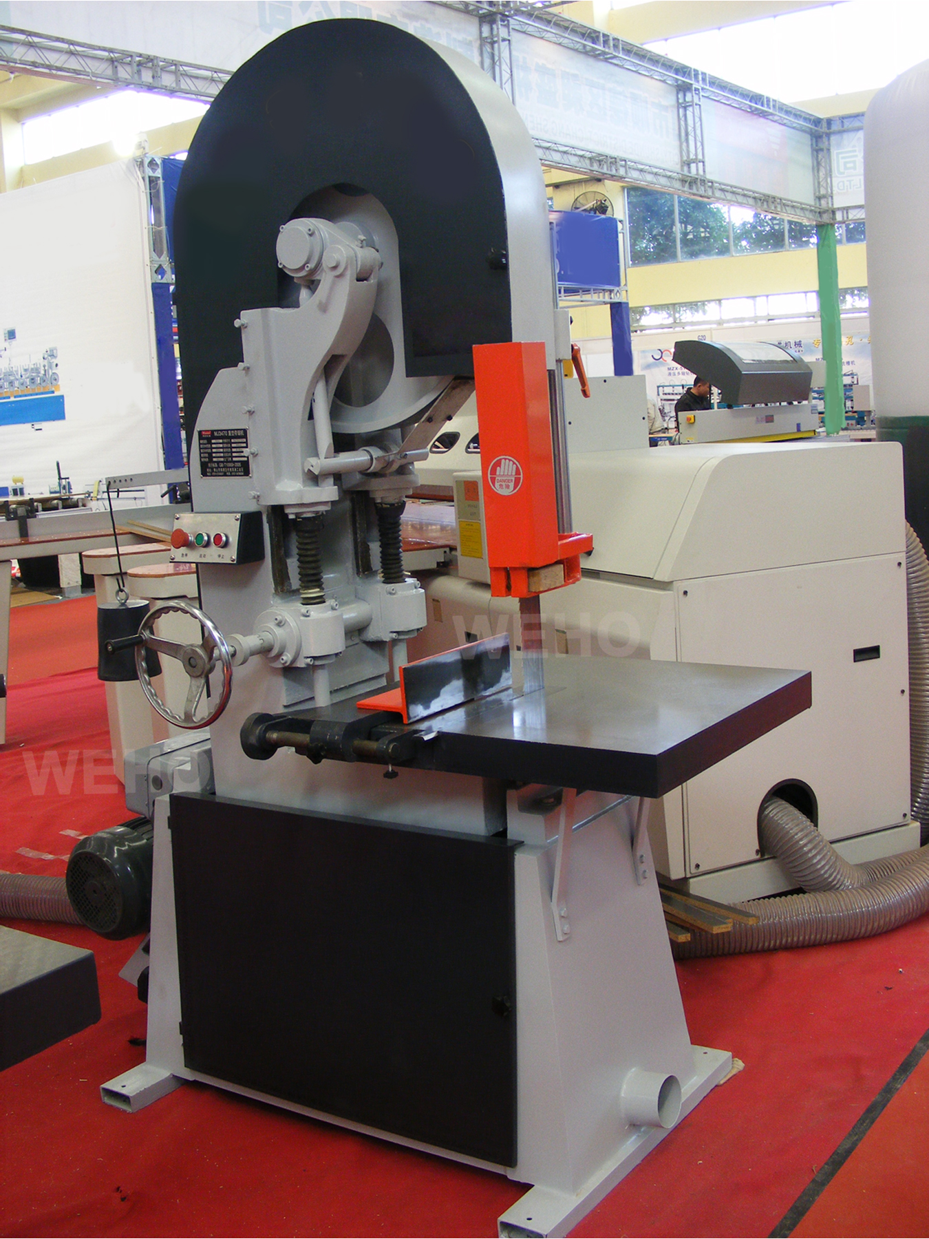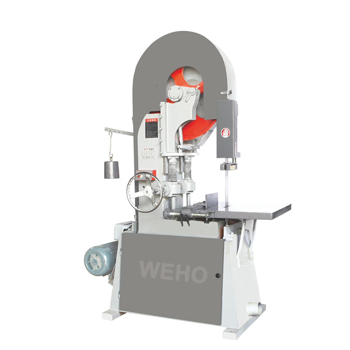 Woodworking vertical band saw machine is designed for smooth cutting and trouble-free operation. Blade tension can be conveniently adjusted by means of a hand-wheel.