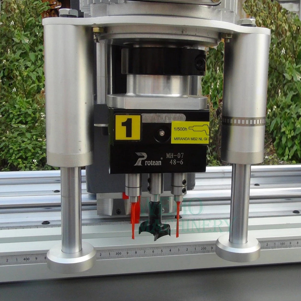 This machine is ideal for hinge holes drilling.Drilling and clamping of workpieces are pneumatically controlled.Drilling head infeed and moving is pneumatically controlled.Drillingdepth can be adjusted.