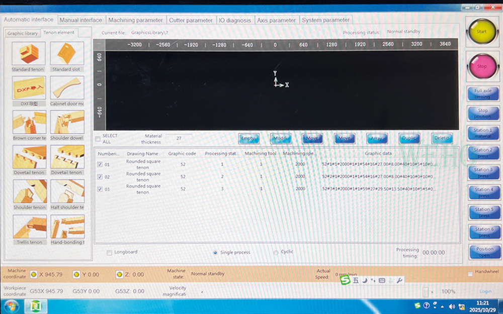 Make 12 types tenons and mortises, 4 or 5pcs can be processed one time passing.