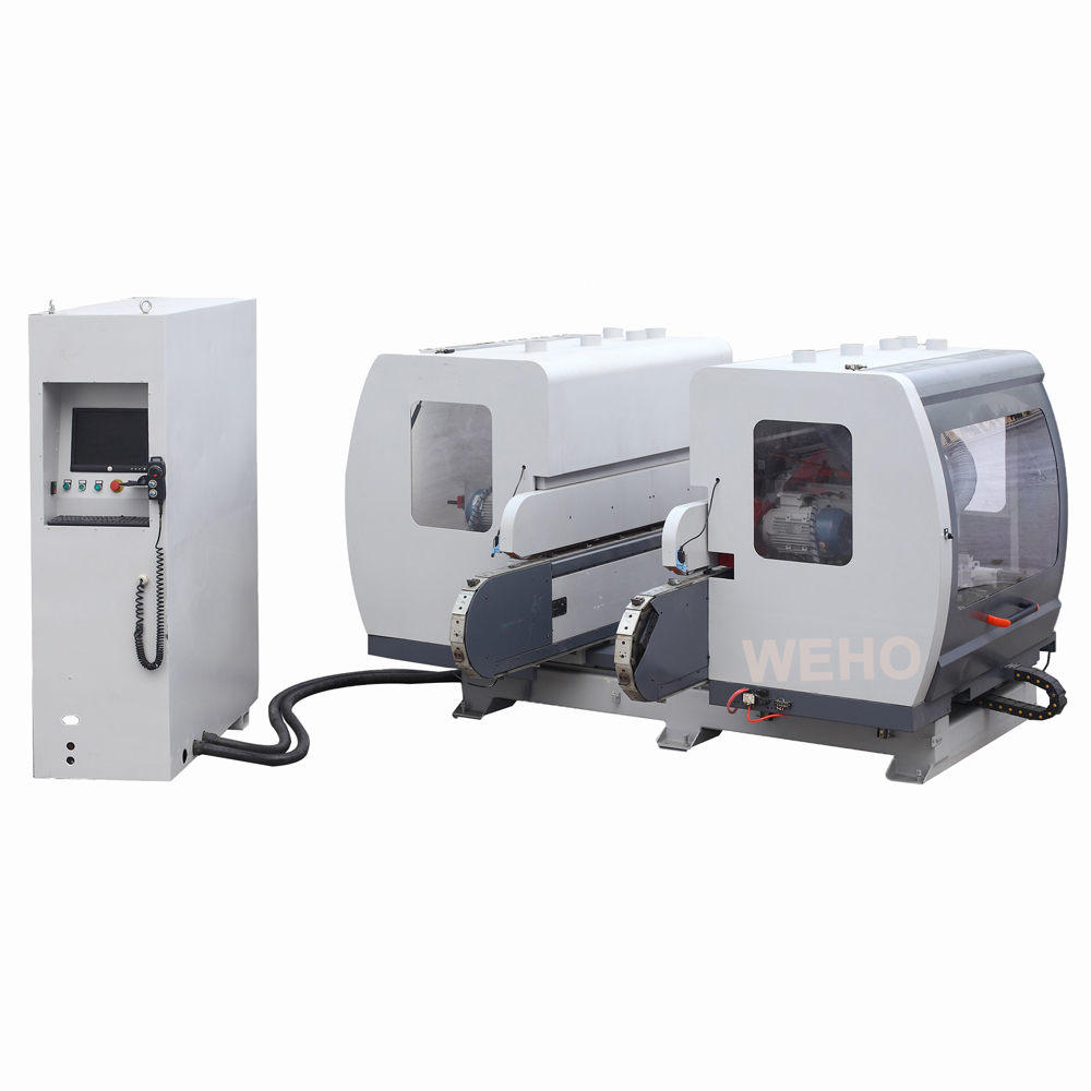 With the imported PLC and the frequency conversion device, the double-end miller works very smooth.Forcefully feeding decelerator features speed regulation by frequency inverter.With the built-in cleaning brush wheel, the dust inside the track guide rail can be cleaned automatically.