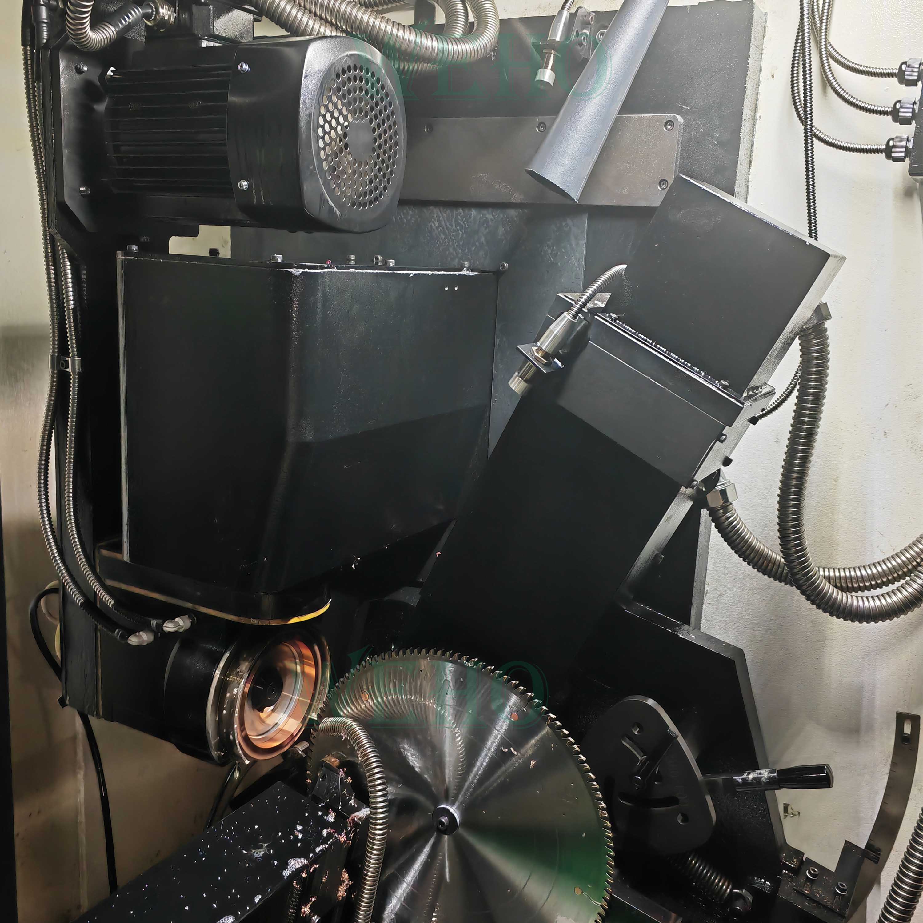 3. Manual/automatic sliding table expands the application space of the machine tool, which can not only process small saw blades, but also process large saw blades, realize the function of cutting in the turning process, and avoid short circuit of copper cutting.