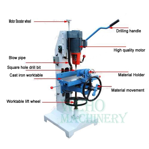Mainly used for drilling round or square mortise holes.Adopts pneumatic motion for the drilling head;Mortiser adopts special dust blowing device which using the power of motor; workbench adopts dovetail guide lifting and moving system.