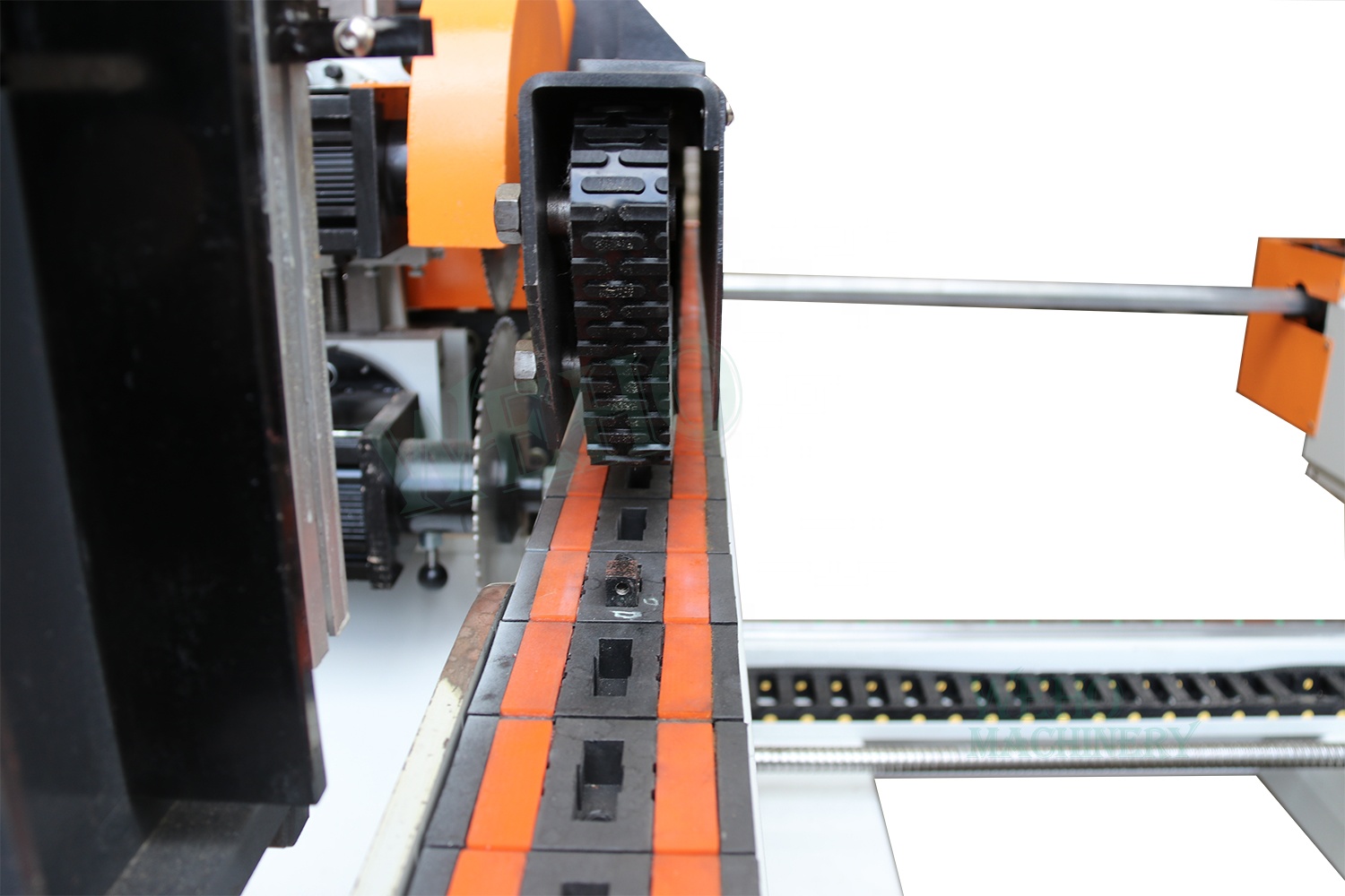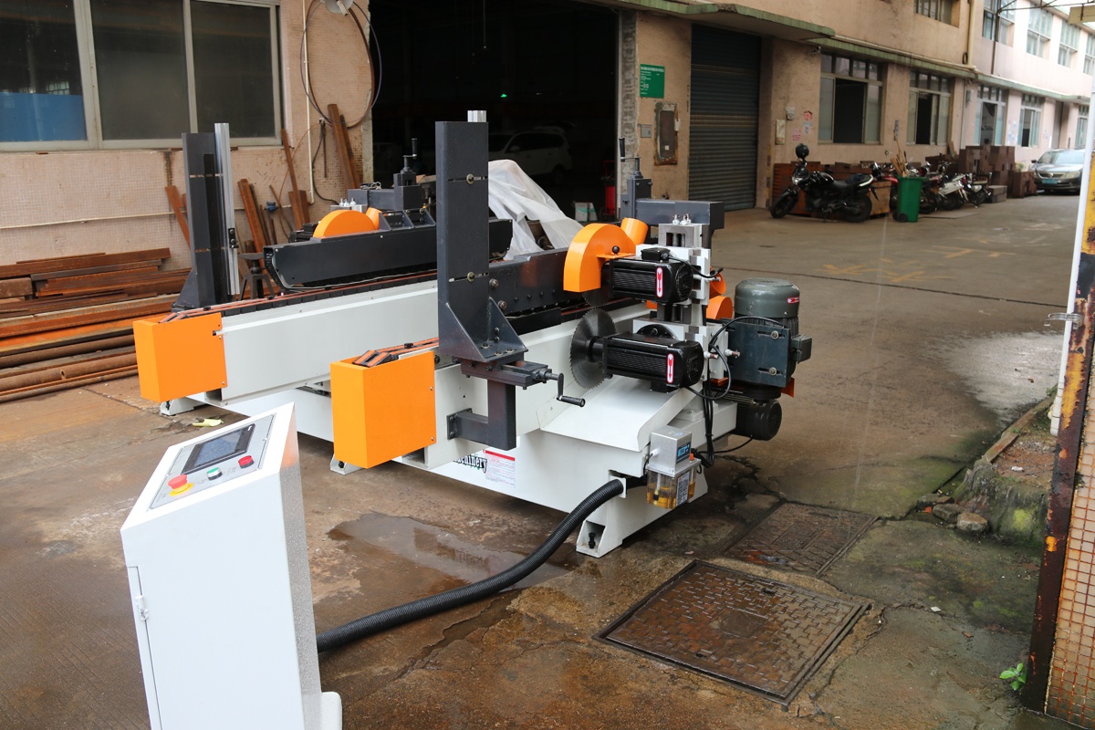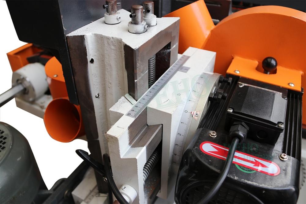 Four side cutting machine for door linear guide rail made from Taiwan ensure end saw moves smooth and accuracy.Track conveyor with fast feeding speed from 8-15 meter per minutes, ensure high efficient end saw cutting or shaper.