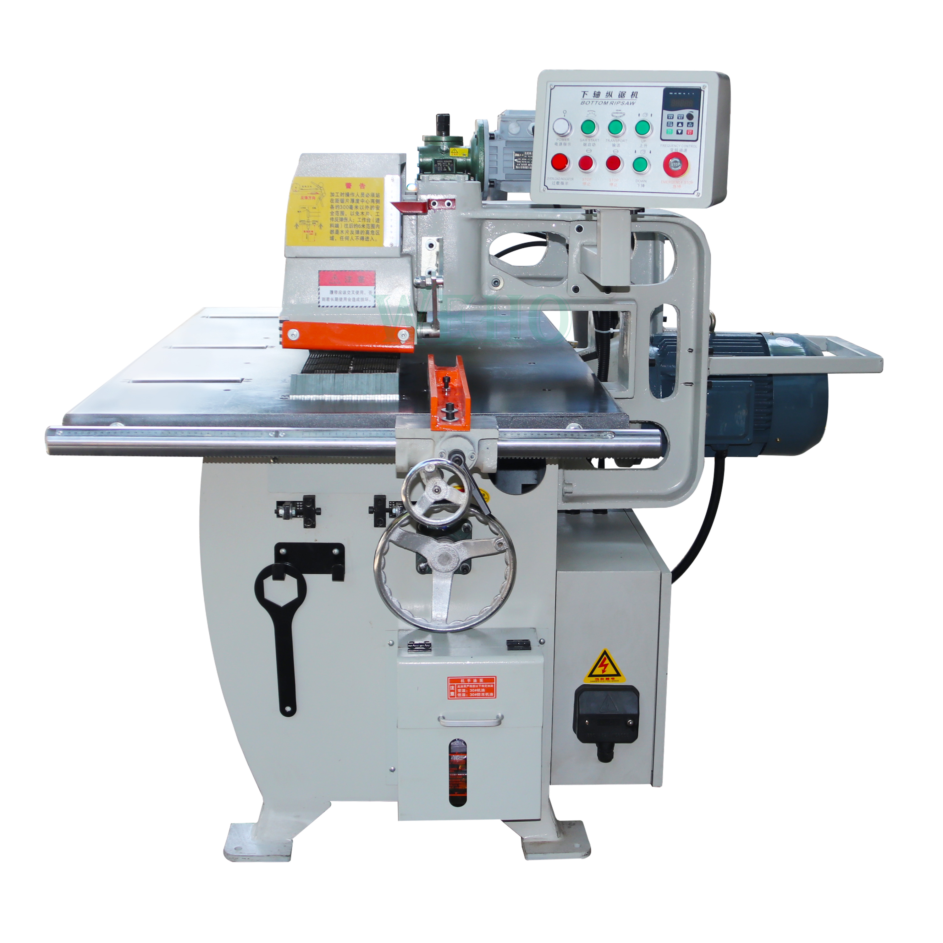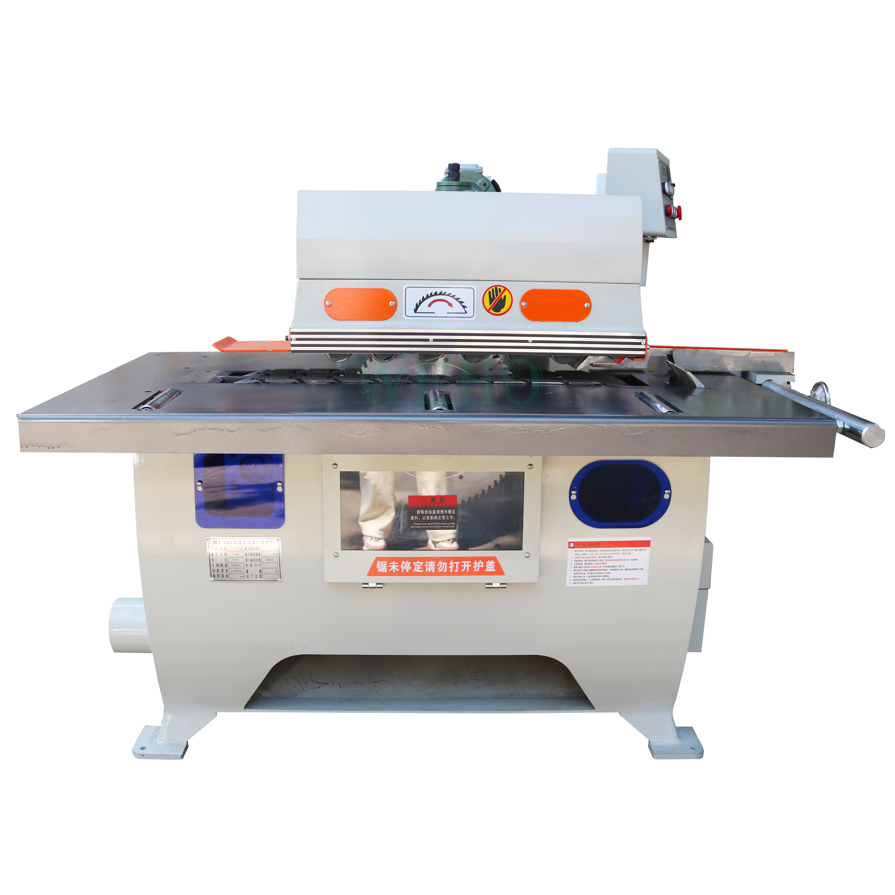 The spindle of rip saw machine assembly adopts special material through super finishing, precision assembling and dynamically balancing, guaranteeing superior stability and precision.