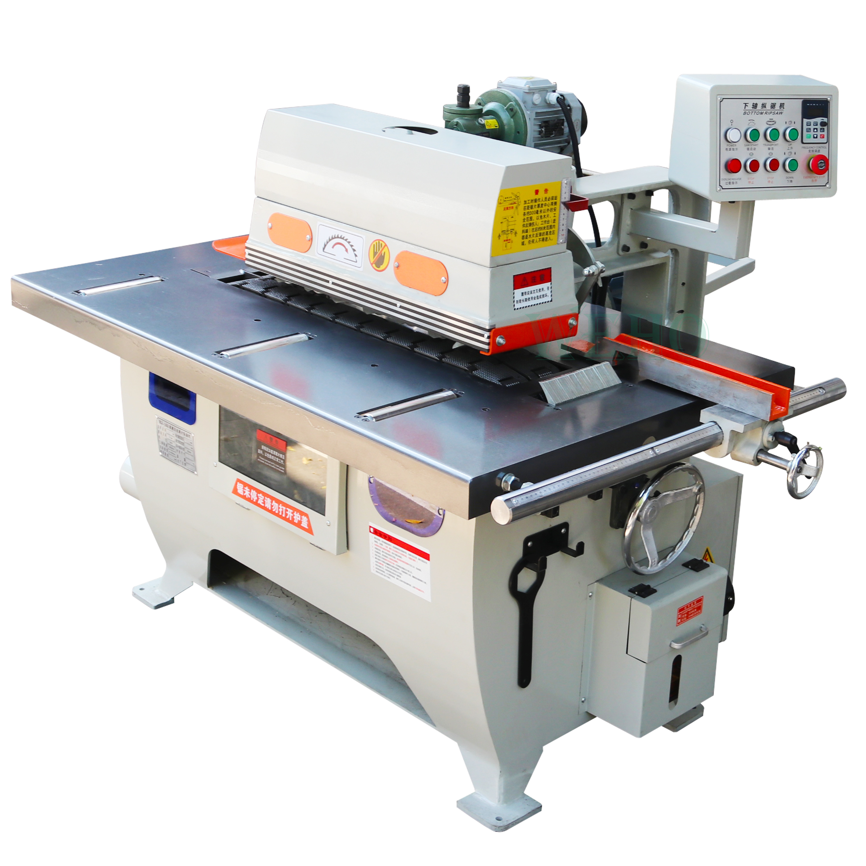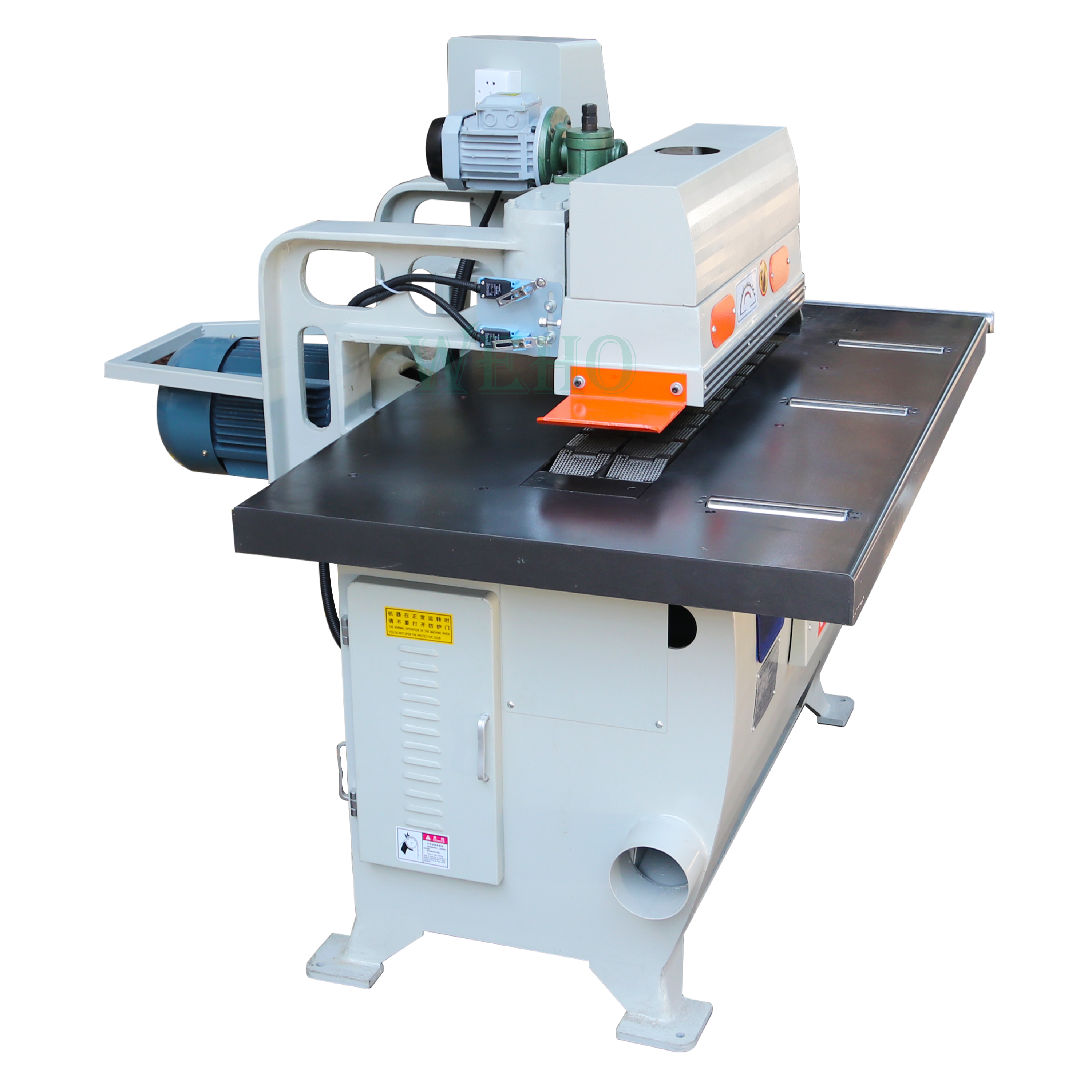 Unique guide fence of Straight line rip saw machine is able to be used at both sides, preventing the chain plate and guide rail from wearing anddamaging the precision of the machine.